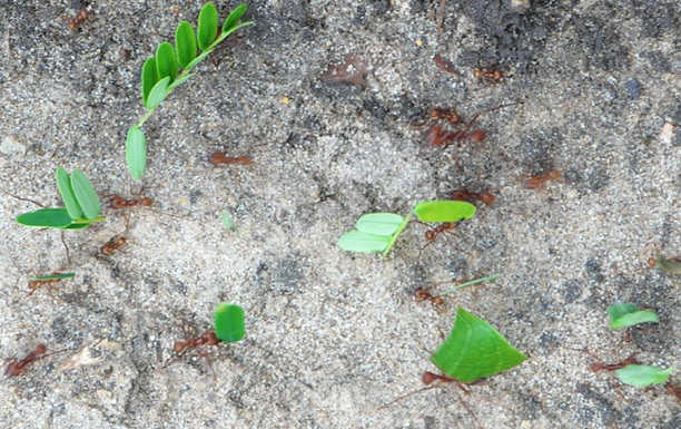 Mierenspoor waarlangs werkmieren in kolonne voedsel naar hun nest brengen